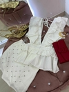 Detalhes: Babados delicados que adicionam movimento à peça, e a amarração nas costas que traz um toque especial e ajustável.